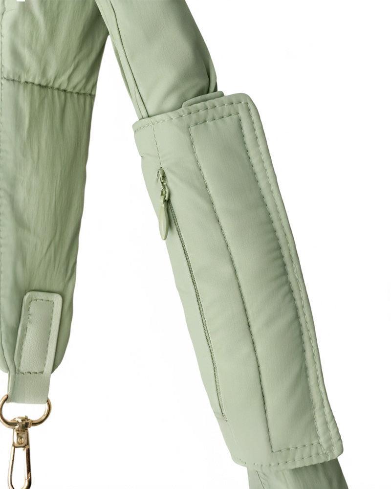 • Detachable shoulder pad for cushioned comfort and no-slip grip with a hidden zipper pocket for small essentials