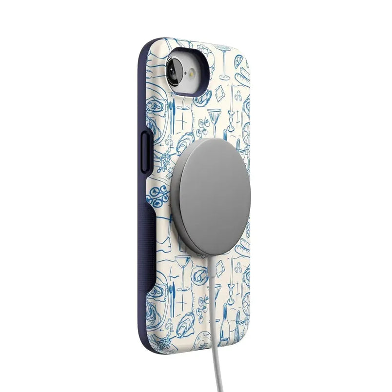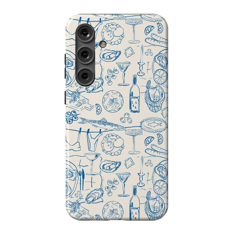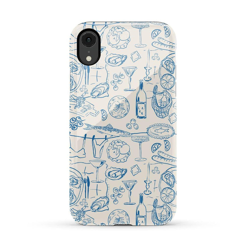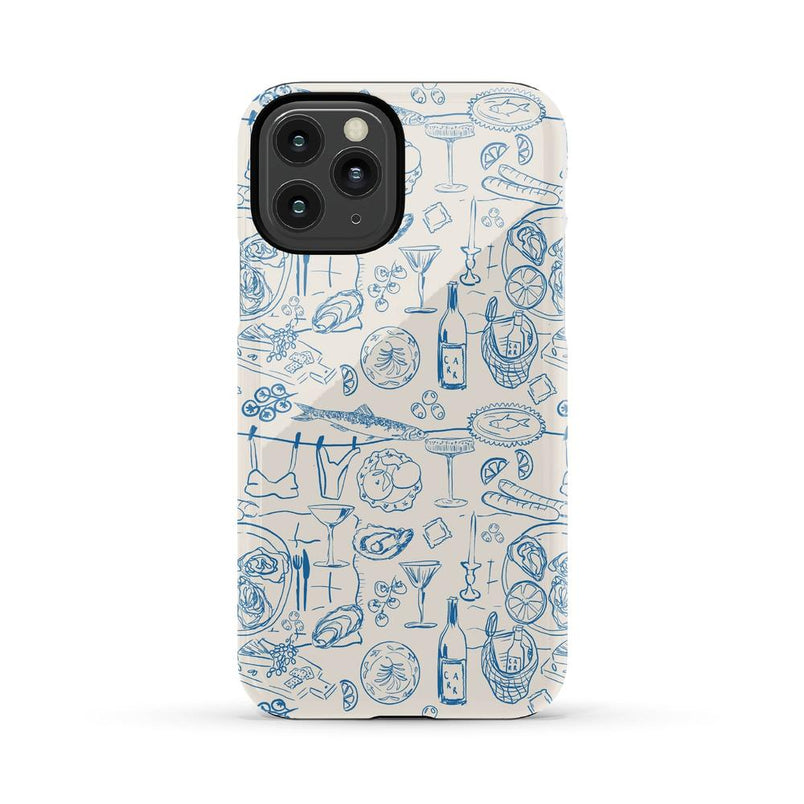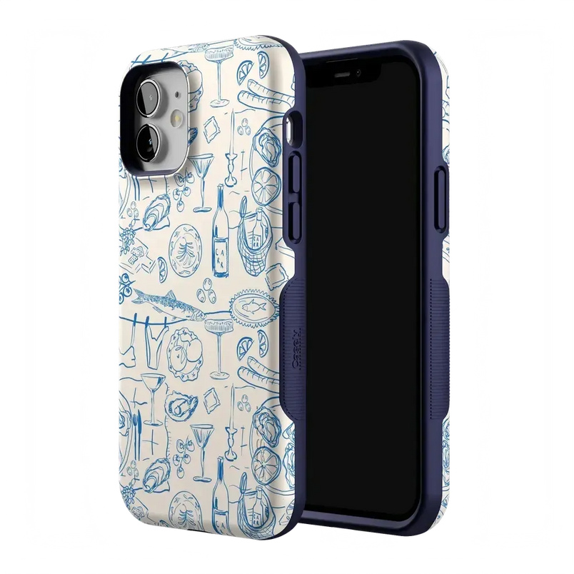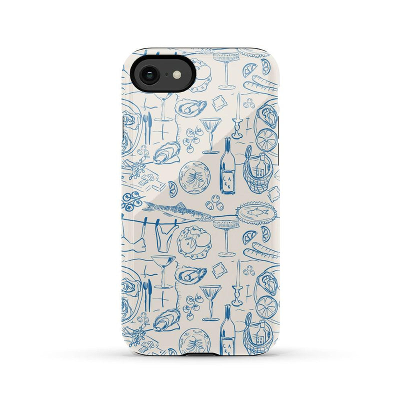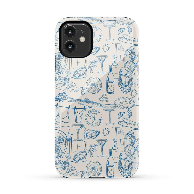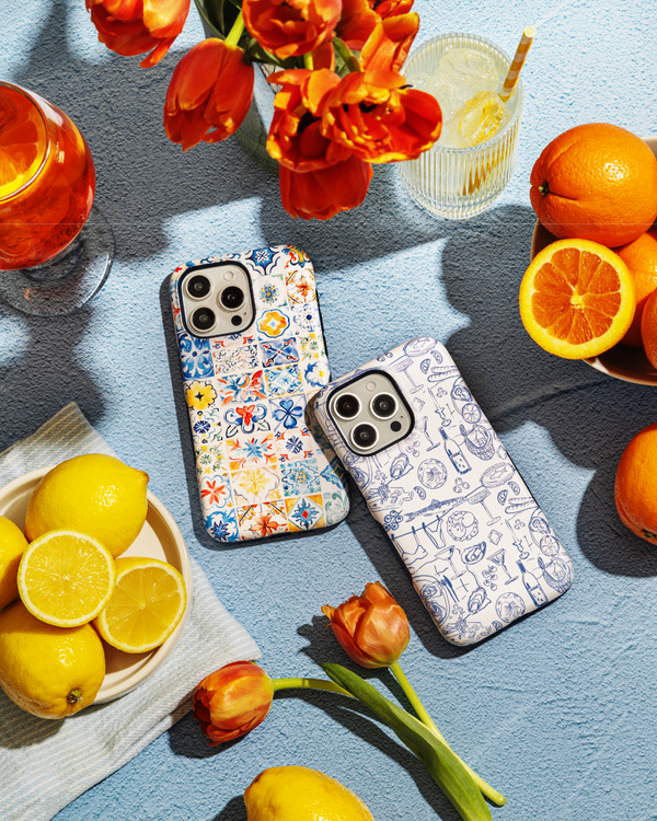 Say ciao to coastal charm with the Amalfi Aperitivo | Dolce Vita Case. Inspired by long lunches and golden hour cocktails on the Italian Riviera, this playful sketch-style design features aperitivo icons like spritzes, olives, pasta, and gelato—all set against a soft ivory backdrop with deep blue detailing. It’s your personal slice of seaside leisure, now in phone case form.