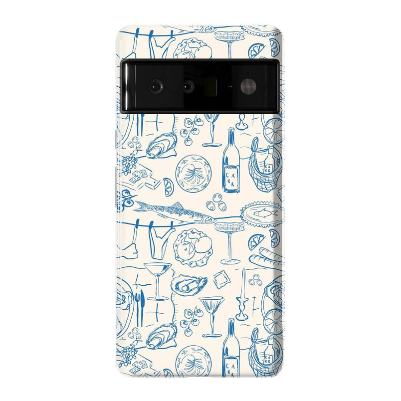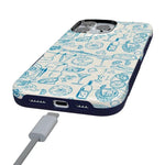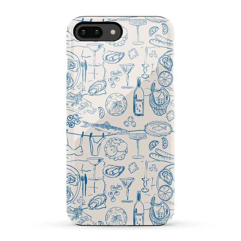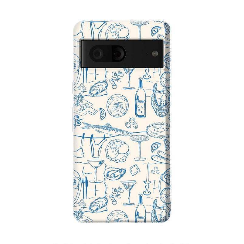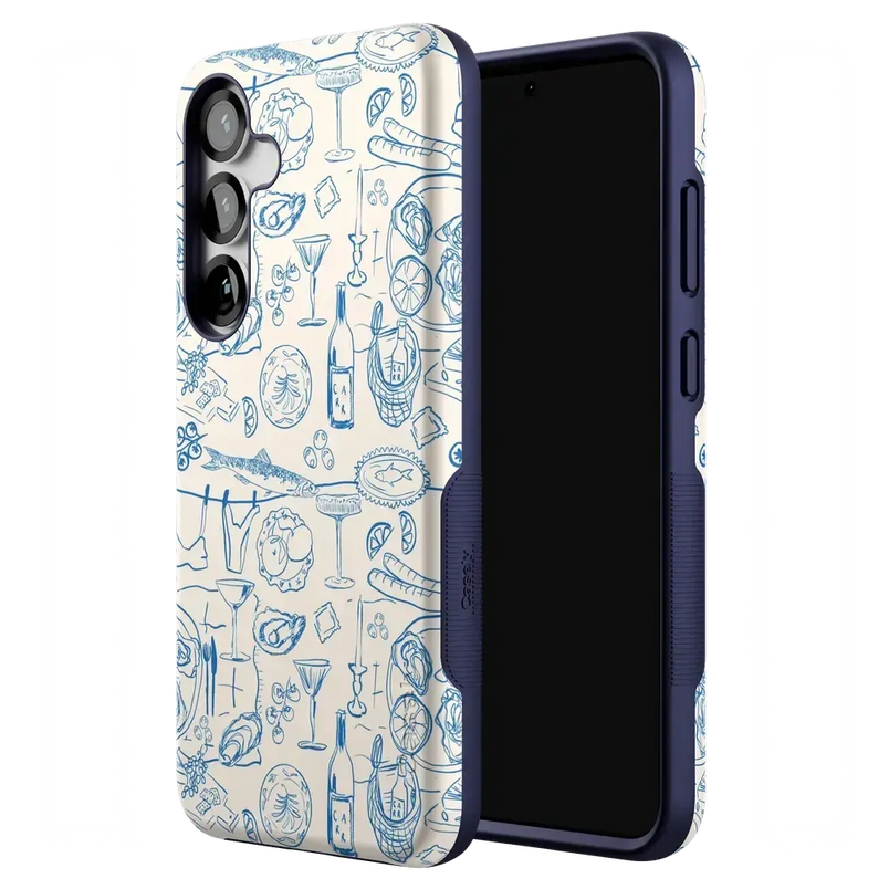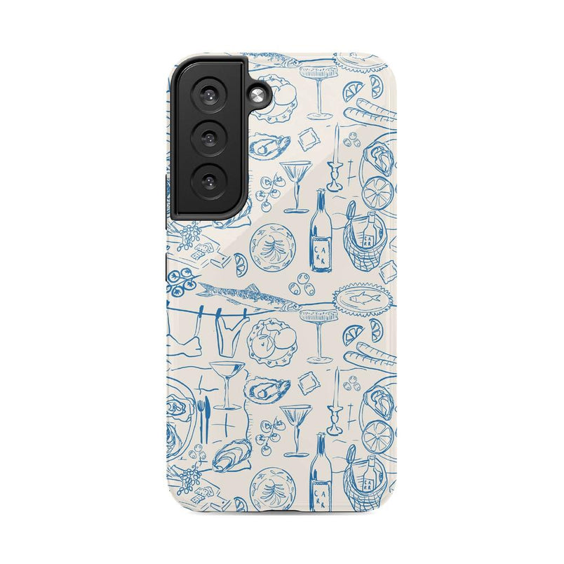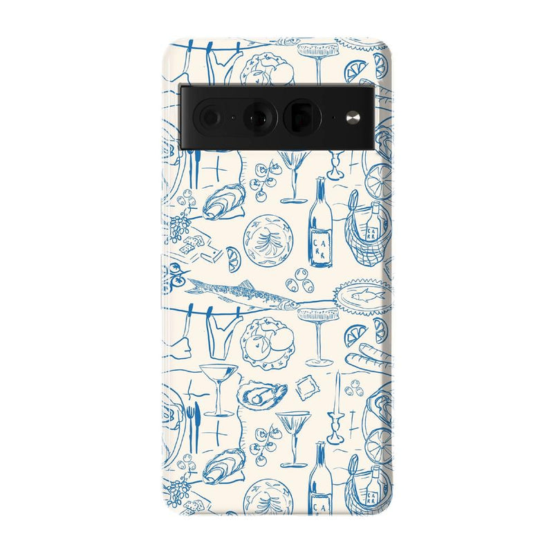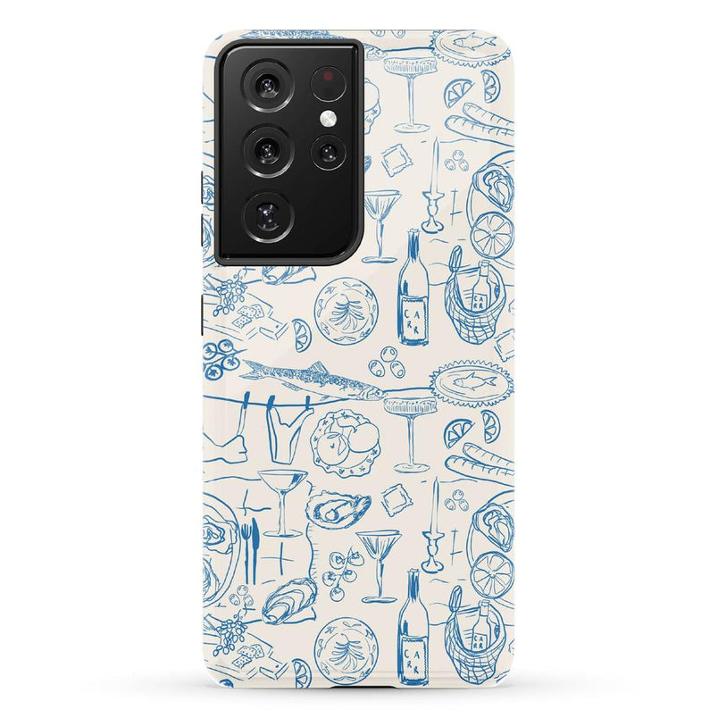 Say ciao to coastal charm with the Amalfi Aperitivo | Dolce Vita Case. Inspired by long lunches and golden hour cocktails on the Italian Riviera, this playful sketch-style design features aperitivo icons like spritzes, olives, pasta, and gelato—all set against a soft ivory backdrop with deep blue detailing. It’s your personal slice of seaside leisure, now in phone case form.