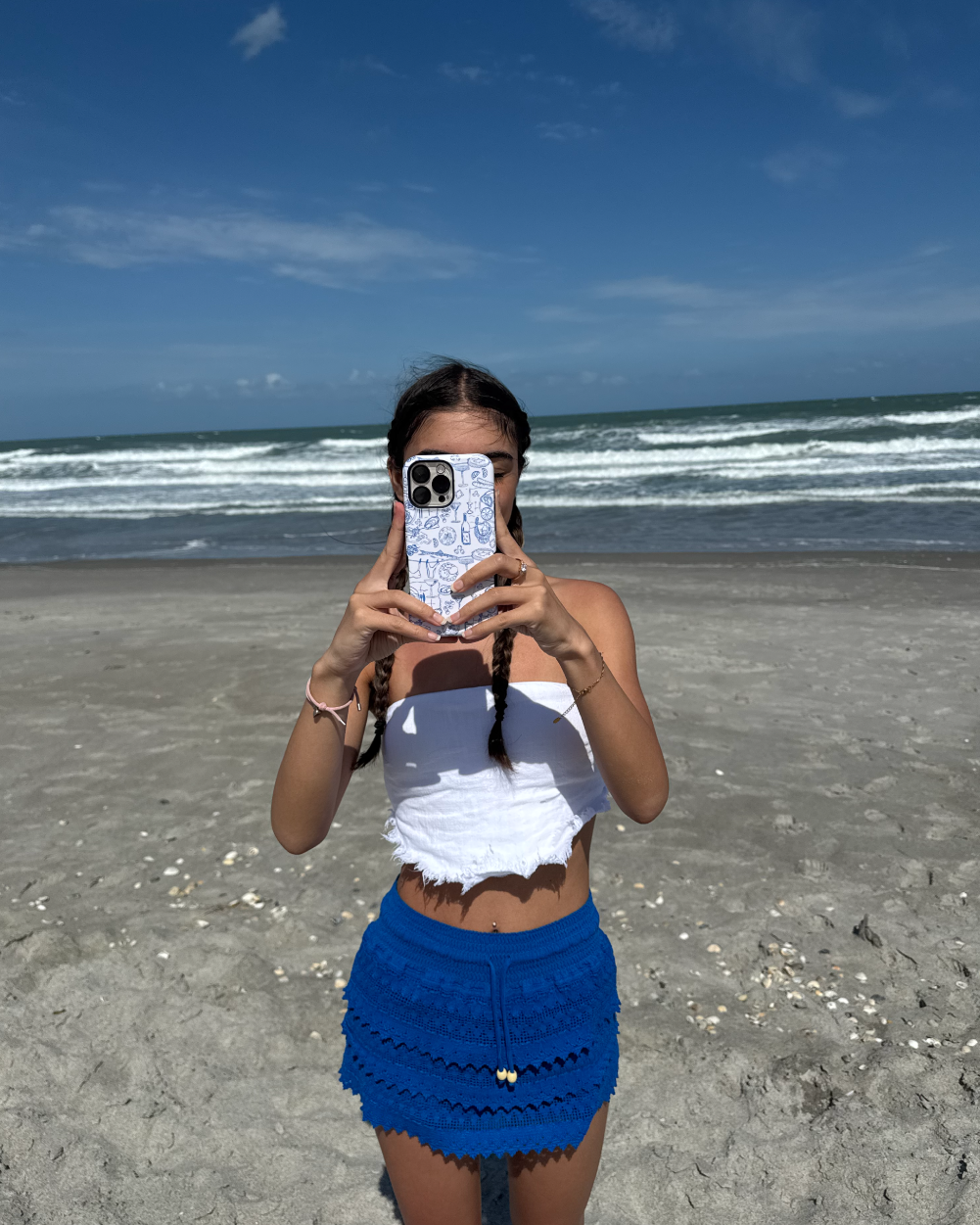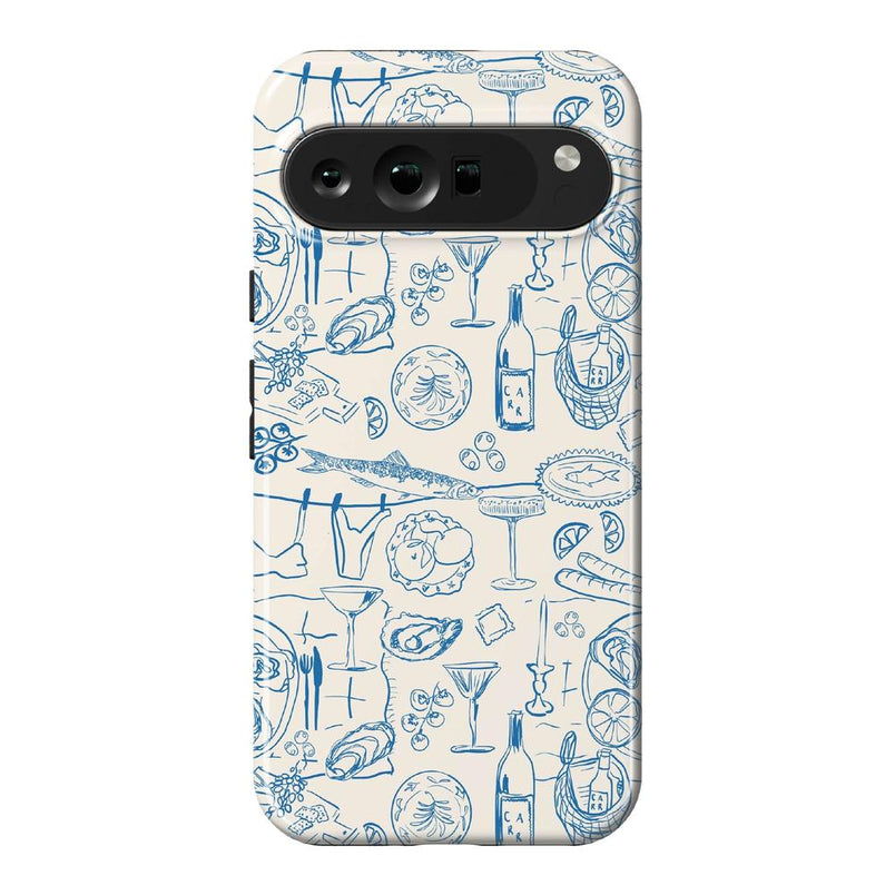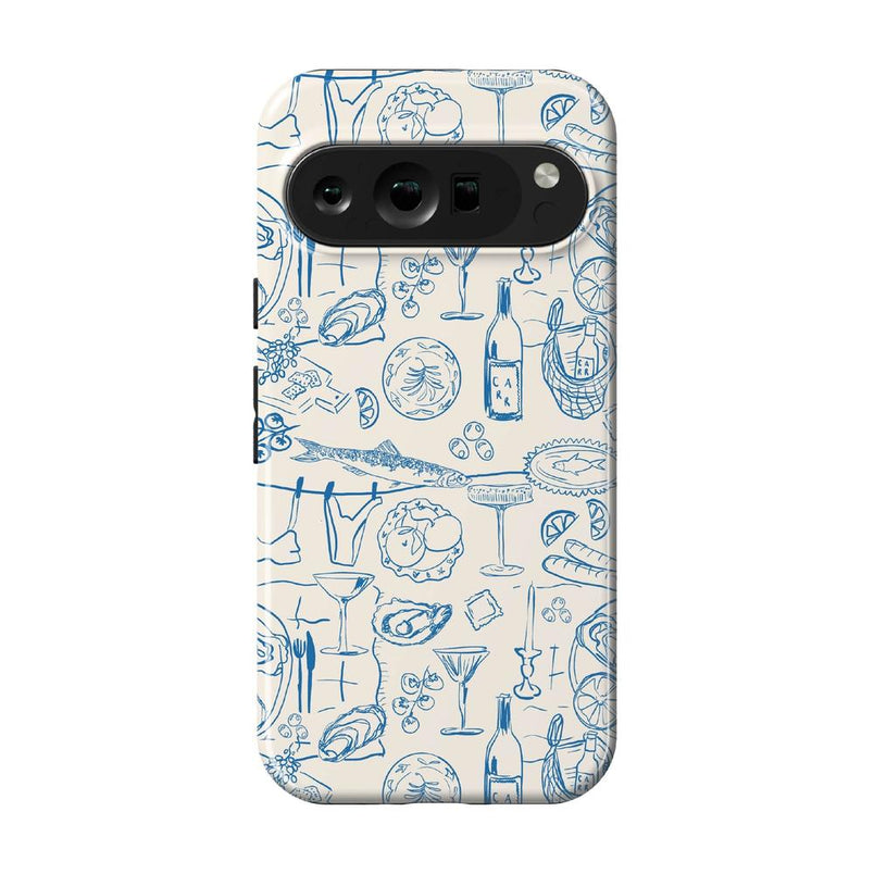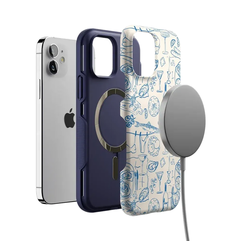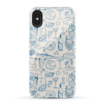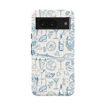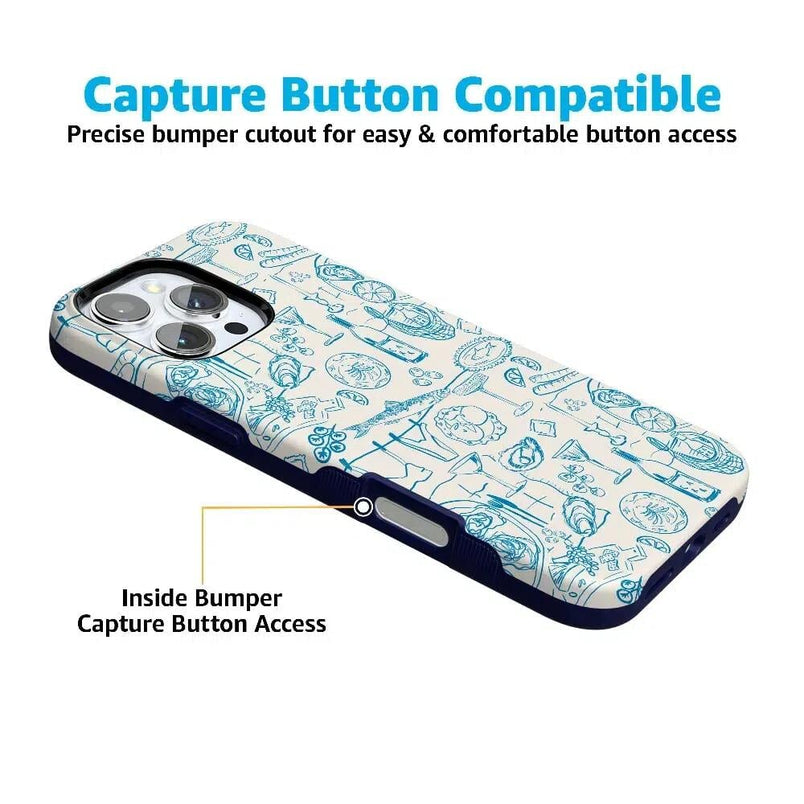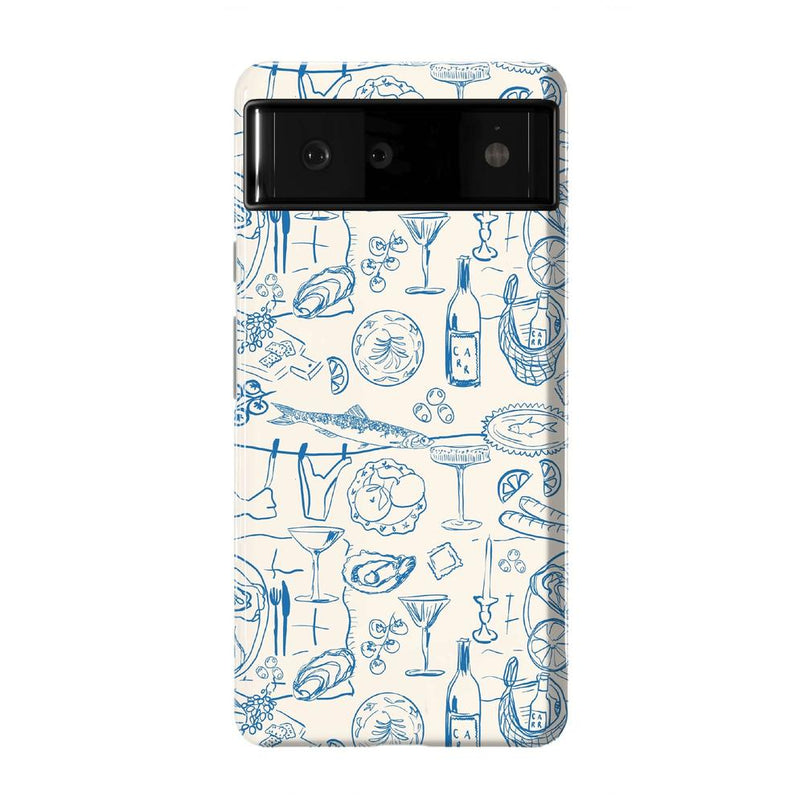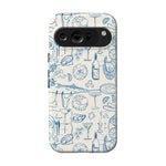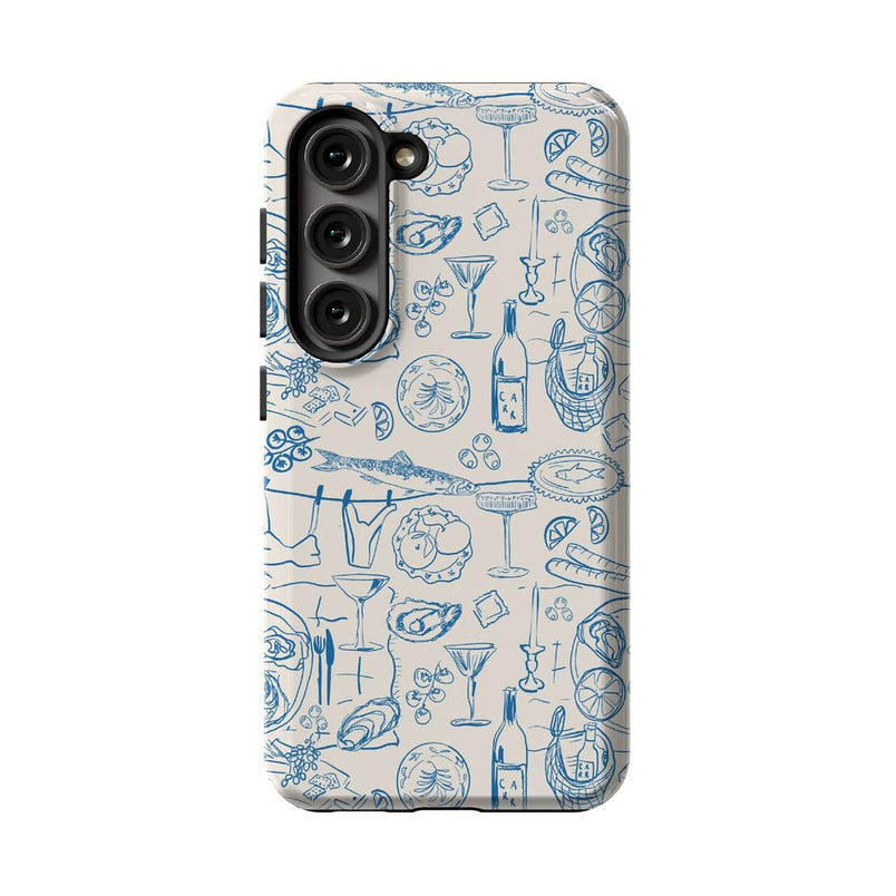 Say ciao to coastal charm with the Amalfi Aperitivo | Dolce Vita Case. Inspired by long lunches and golden hour cocktails on the Italian Riviera, this playful sketch-style design features aperitivo icons like spritzes, olives, pasta, and gelato—all set against a soft ivory backdrop with deep blue detailing. It’s your personal slice of seaside leisure, now in phone case form.