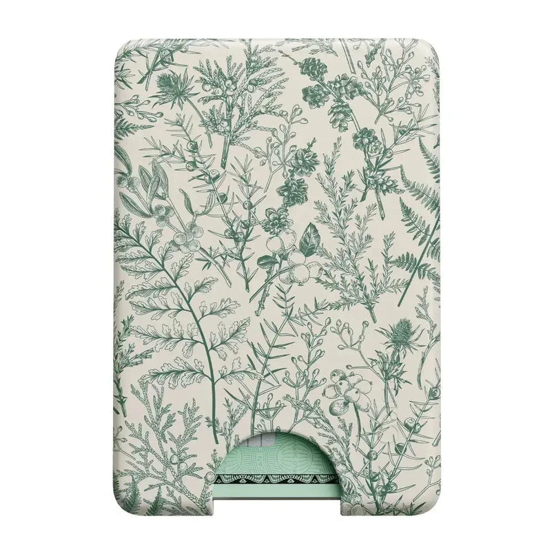 Bring a touch of nature to your everyday carry with the Sage Garden Green Floral MagWallet. Designed for both function and elegance, this MagSafe-compatible wallet securely attaches to your phone with a super-strong built-in magnet, ensuring your essentials stay in place. Made from soft-touch hard silicone, it offers a smooth, premium feel with an ultra-slim design that fits seamlessly in your pocket. The bottom cutout push-up mechanism allows for quick and easy card access. Featuring an intricate sage green botanical print, this wallet is perfect for those who love a natural, vintage-inspired aesthetic.