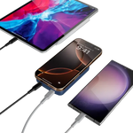 The Navy Power Pod Max is compatible with MagSafe-enabled iPhones, Qi-certified devices, and USB-C gadgets. Its sleek navy finish adds a touch of sophistication to your tech, making it an essential companion for work, travel, or play.