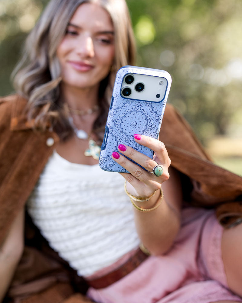 Bring a little luck everywhere you go with the Lucky Bandana Case, part of the Keepsake Collection by Jenna Palek. This design captures Jenna’s signature carefree vibe with a timeless bandana print in a dreamy shade of blue.