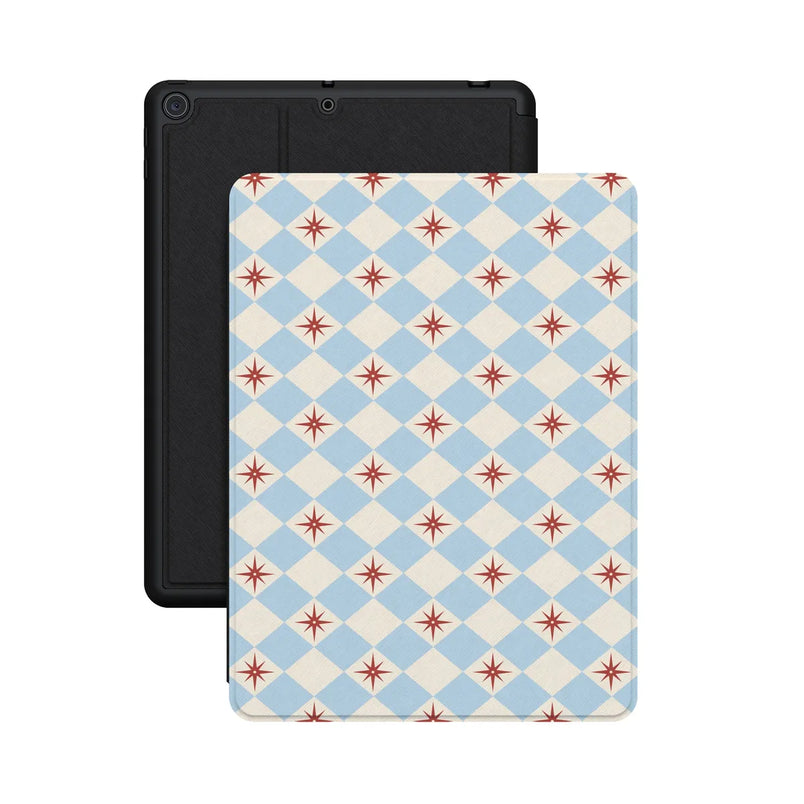 A fresh take on classic tiles. The Chelsea Checker Starlight Tiles iPad Case features soft blue and cream diamonds accented with starburst details, creating a repeating pattern that feels both playful and polished across a larger canvas.
