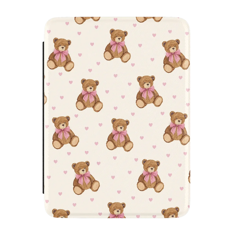 Cute, cozy, and full of nostalgia. The Cuddle Up Teddy Bear Kindle Case features adorable teddy bears scattered across a warm cream background, accented with tiny pink hearts for a soft, nostalgic feel. The playful pattern adds personality while keeping things polished for everyday use.