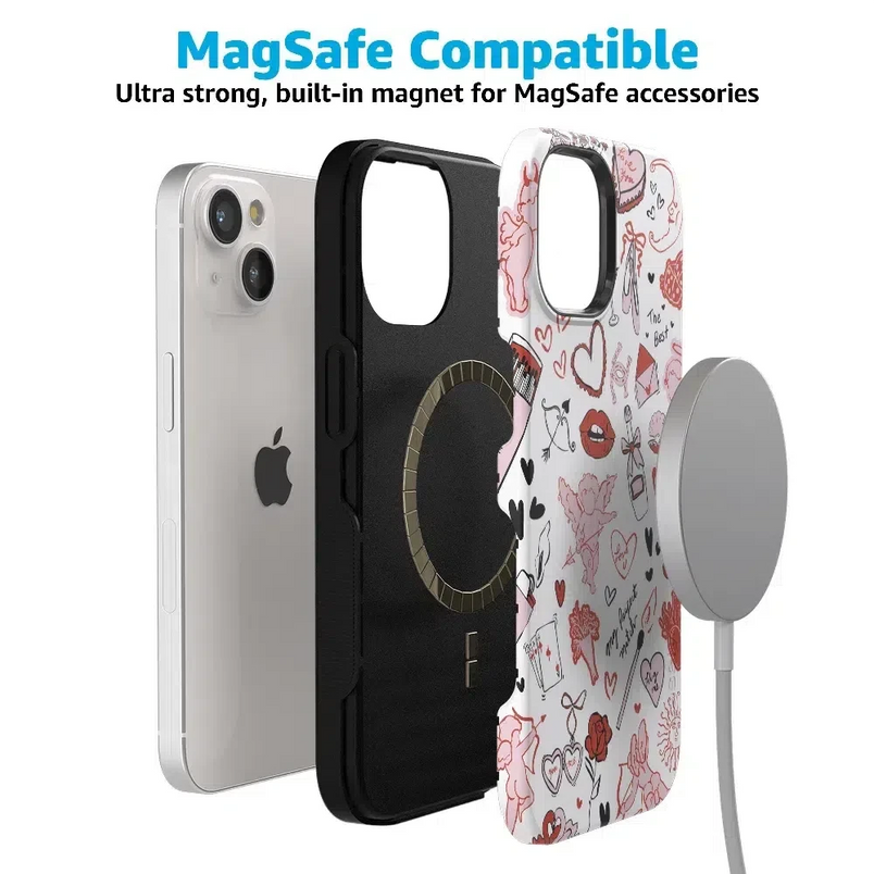 Built for both style and protection, this case keeps your phone safe from drops, bumps, and scratches. With MagSafe compatibility and precision cutouts for buttons, cameras, and ports, it seamlessly blends functionality with a cute, romantic aesthetic.