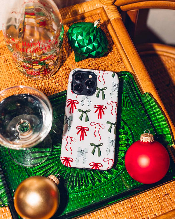 Get ready for the holidays with the Festive Girlie Holiday Bows Case, a stylish and playful addition to our holiday collection. Featuring a charming array of red and green bows, this case adds a festive flair to any outfit, making it the perfect accessory for spreading holiday cheer. Designed to fit Google Pixel, Samsung Galaxy, and iPhone devices, it combines holiday style with everyday protection.