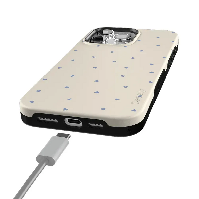 Fall for simplicity and charm with the I'm Yours | Tiny Hearts Case, the blue counterpart to our beloved Be Mine | Tiny Hearts Case. This design features delicate blue hearts scattered across a creamy neutral background, creating a look that’s sweet, subtle, and perfect for any occasion.