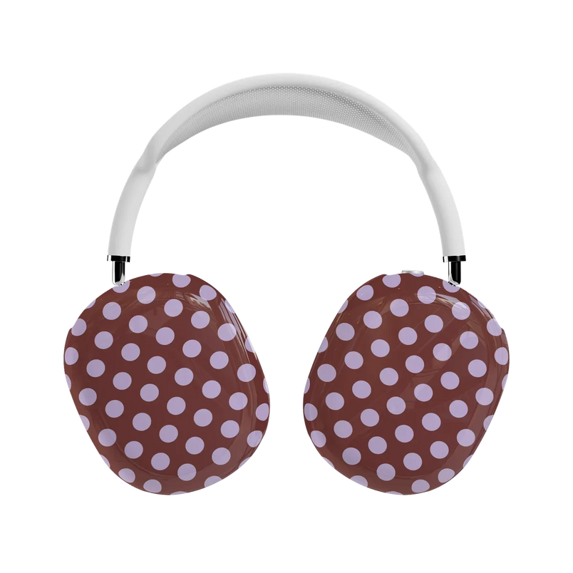 Playful dots, elevated. The Spotted in SoHo Polka Dot AirPods Max Case features evenly spaced lavender dots on a burgundy background. The contrast and spacing give the pattern a bold, fashion-forward feel without overwhelming the design.