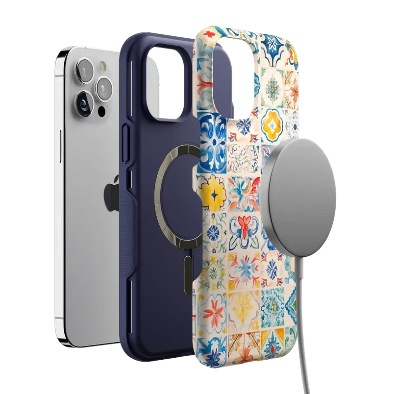 Bring the charm of the Italian coast to your everyday essentials with the Tuscan Tiles | Dolce Vita Case. Inspired by the vibrant ceramic tiles of sun-soaked Mediterranean towns, this phone case features an intricate, colorful mosaic of hand-painted floral and geometric patterns. Built with durable protection and MagSafe® compatibility, it's the perfect blend of beauty and function. Available in both Classic and Bold styles for most iPhone and select Samsung & Pixel models.